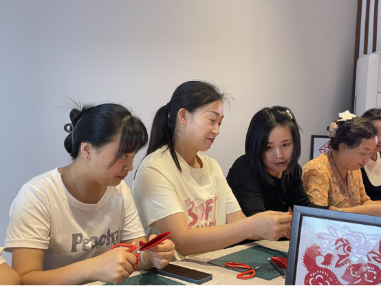活动现场,一幅幅精美的剪纸作品在巧手中诞生,艾草的清香在空气中弥漫。在专业老师的指导下,参与者们全神贯注,红纸在指尖翻飞间化作栩栩如生的龙舟、粽子等端午元素;艾草锤制作区里,大家将晒干的艾叶细心包裹,制作成寓意安康的艾草养生锤,现场欢声笑语不断,传统技艺的传承在互动体验中自然流淌。