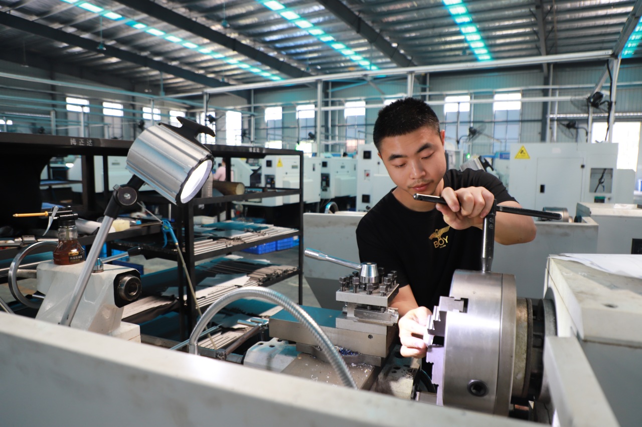 在四川博正达机械密封件科技有限公司精加工车间内,全套现代化机械设备及生产流水线正在高速运转,工人们熟练地操作着各类零部件生产机器,在各自岗位上有序作业。