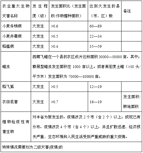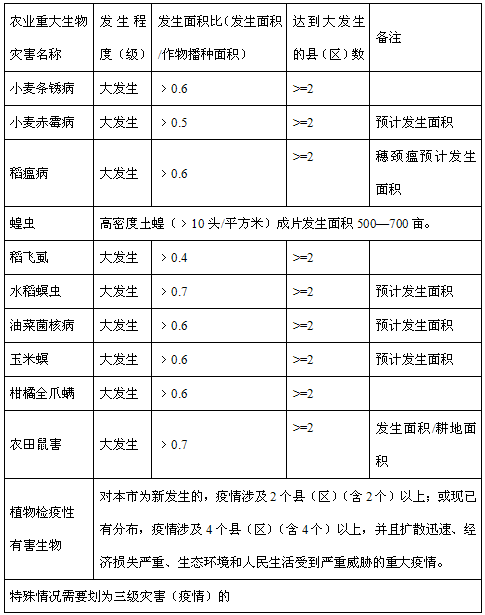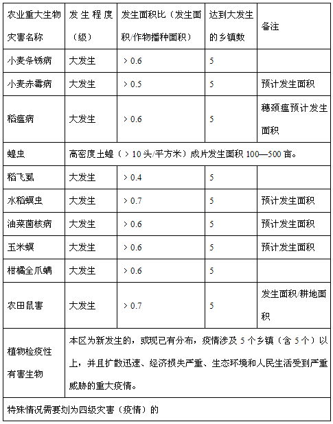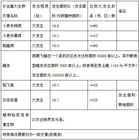 本预案所称农业重大有害生物灾害是指危害主要农作物并可造成较大损失的主要病、虫、草、鼠等突发性农业有害生物灾害以及植物检疫性有害生物(全国农业植物检疫性有害生物、四川补充植物检疫性有害生物、国家明令禁止入境的危险性有害生物或新传入的高风险性外来有害生物)。