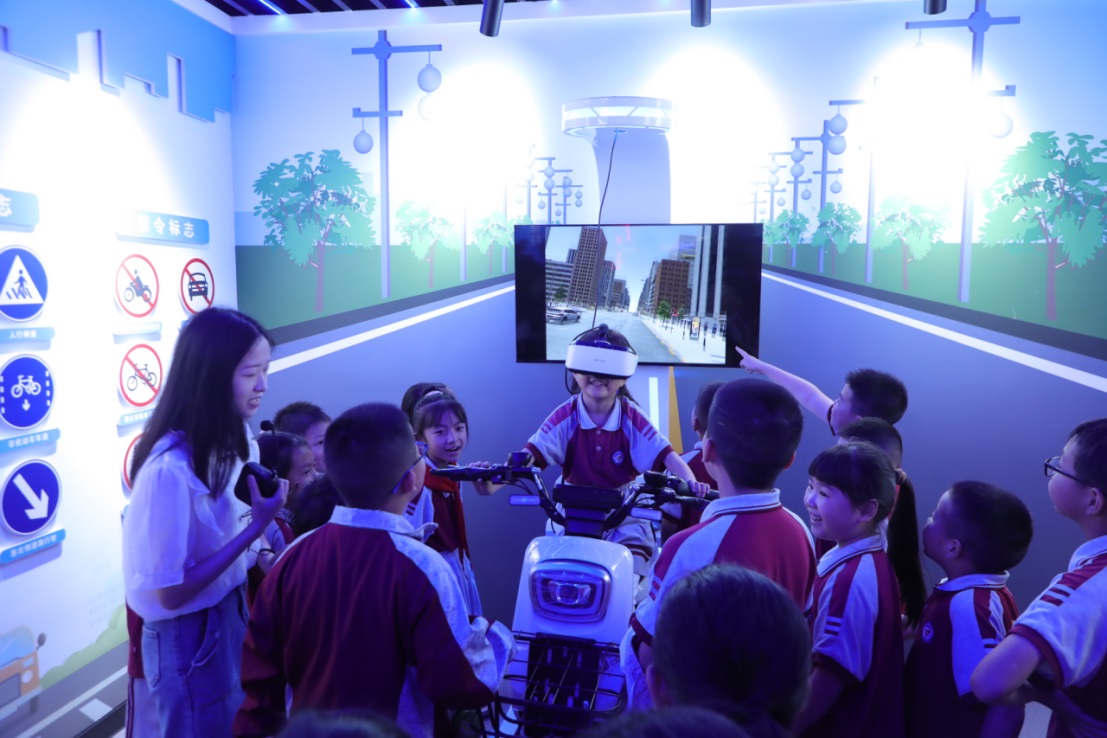 在区未成年人保护中心,工作人员通过多媒体视频、实景互动、沉浸式VR、相关知识讲解等多种形式,让同学们参与体验消防安全、交通安全、居家安全、毒品危害等方面的场景,更加有效直观地传播应急救援科普,全面提升少年儿童的自我保护能力。
