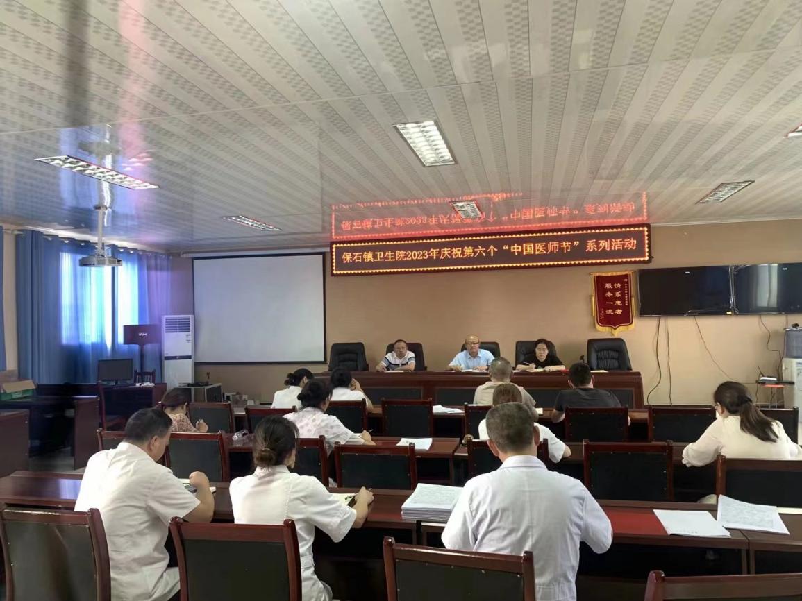 2023年8月8日14:00,保石镇卫生院开展了庆祝第六届“中国医师节”系列活动座谈会。参加本次活动的人员有全体医师、全体中层及以上干部,党支部书记、院长王平主持会议。