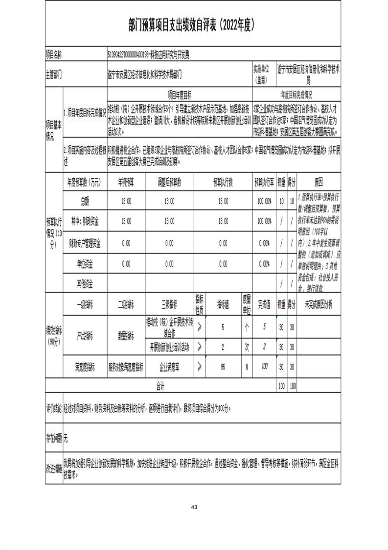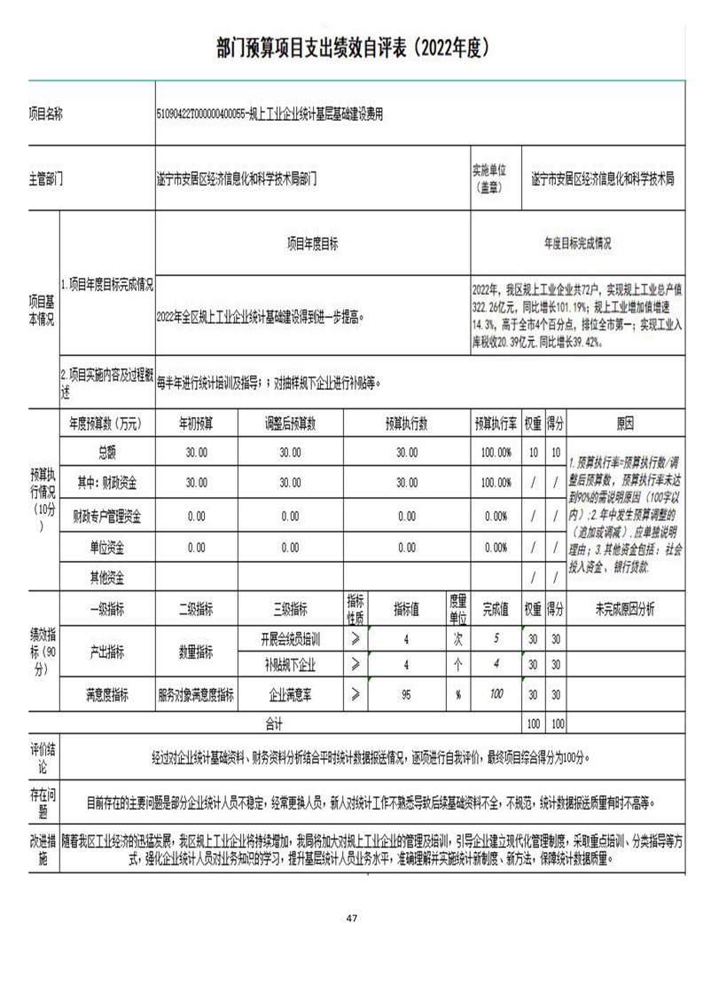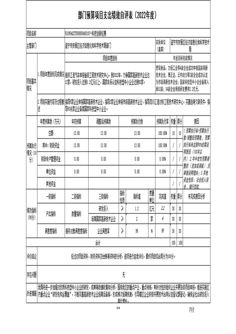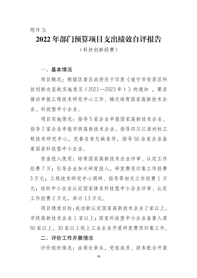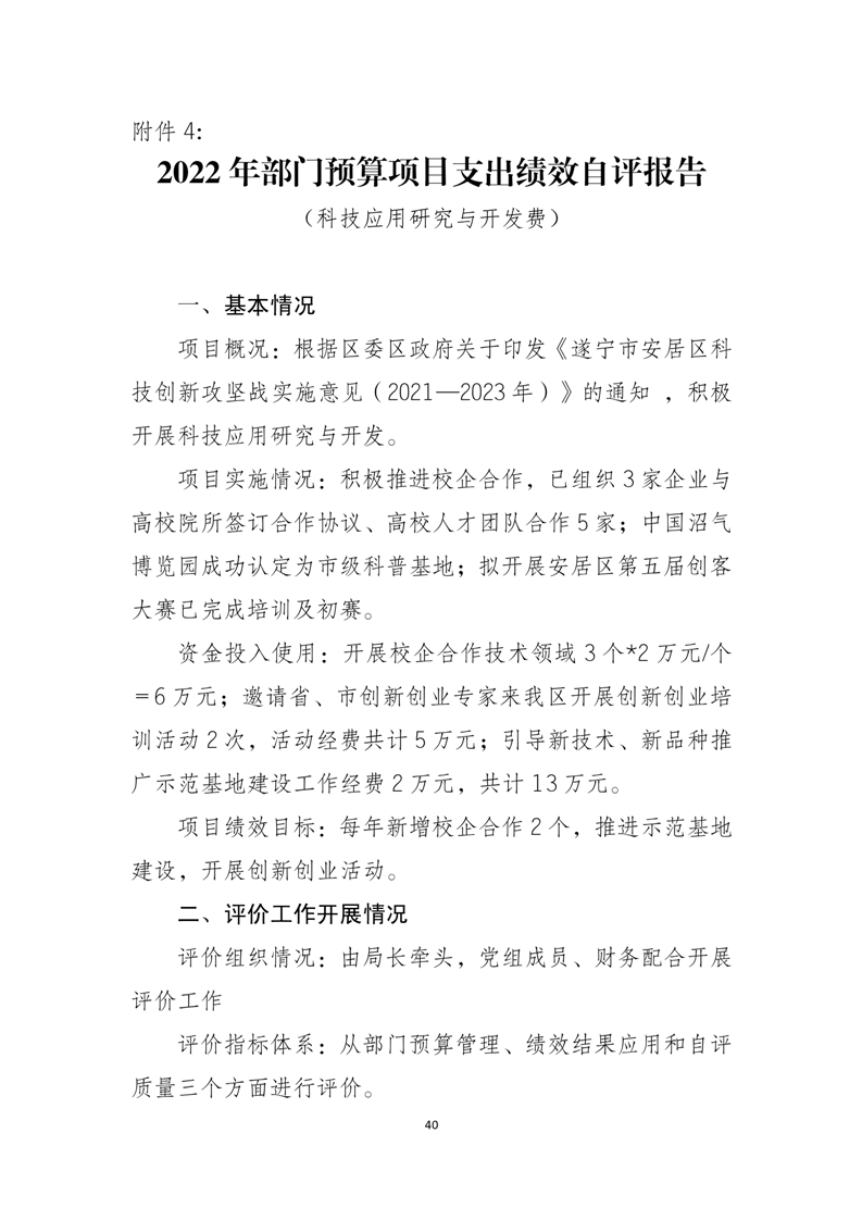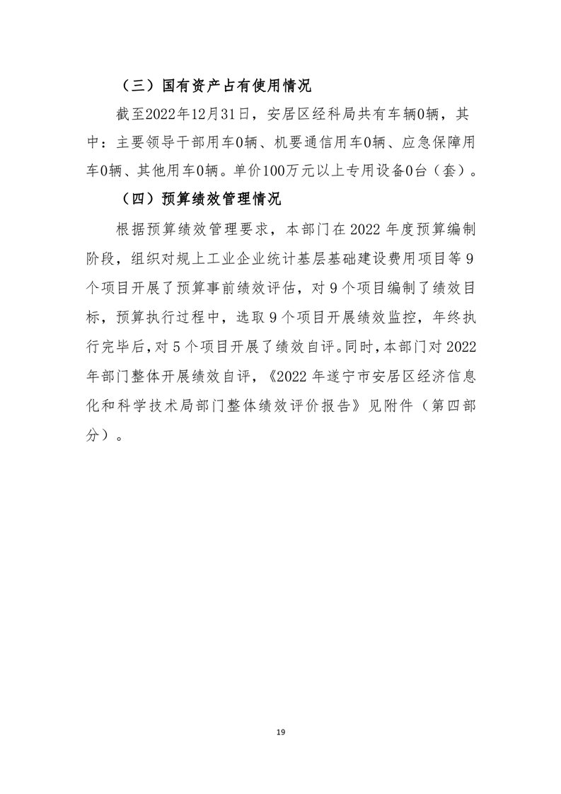 遂宁市安居区经济信息化和科学技术局2022年决算公开