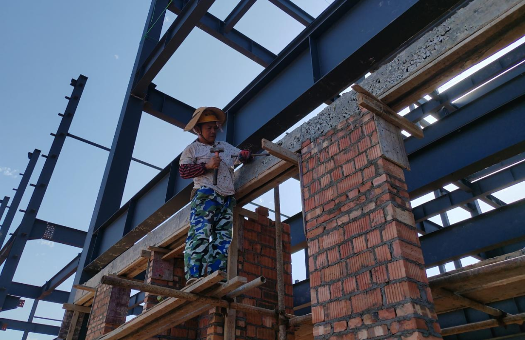 “隆隆——”上午9点,在安居区新时味食品有限公司年产2万吨调味品精深加工项目现场,各类机械运转的声音交织成一片。尽管户外气温已逼近35℃,但工人们仍穿梭钢筋骨架间,用汗水为项目“生长”注入动力。