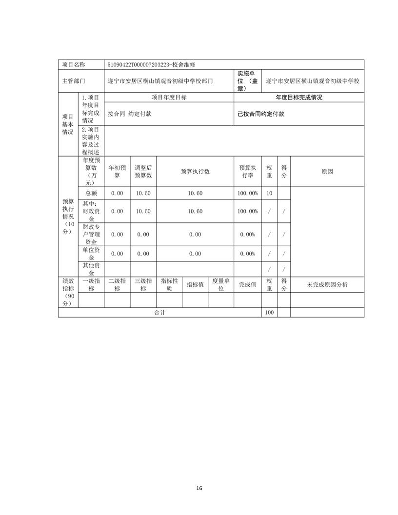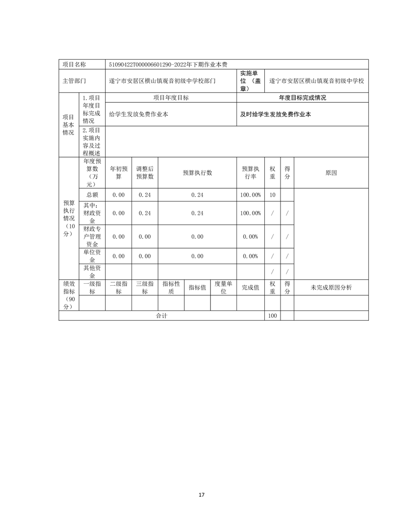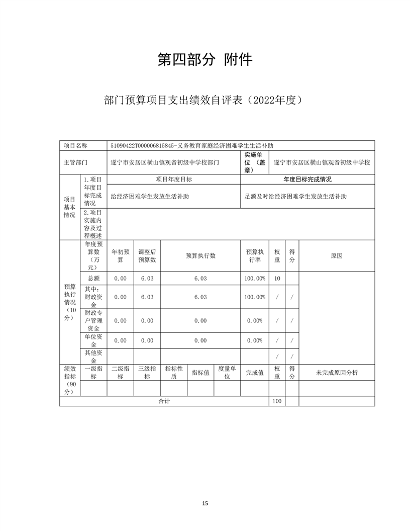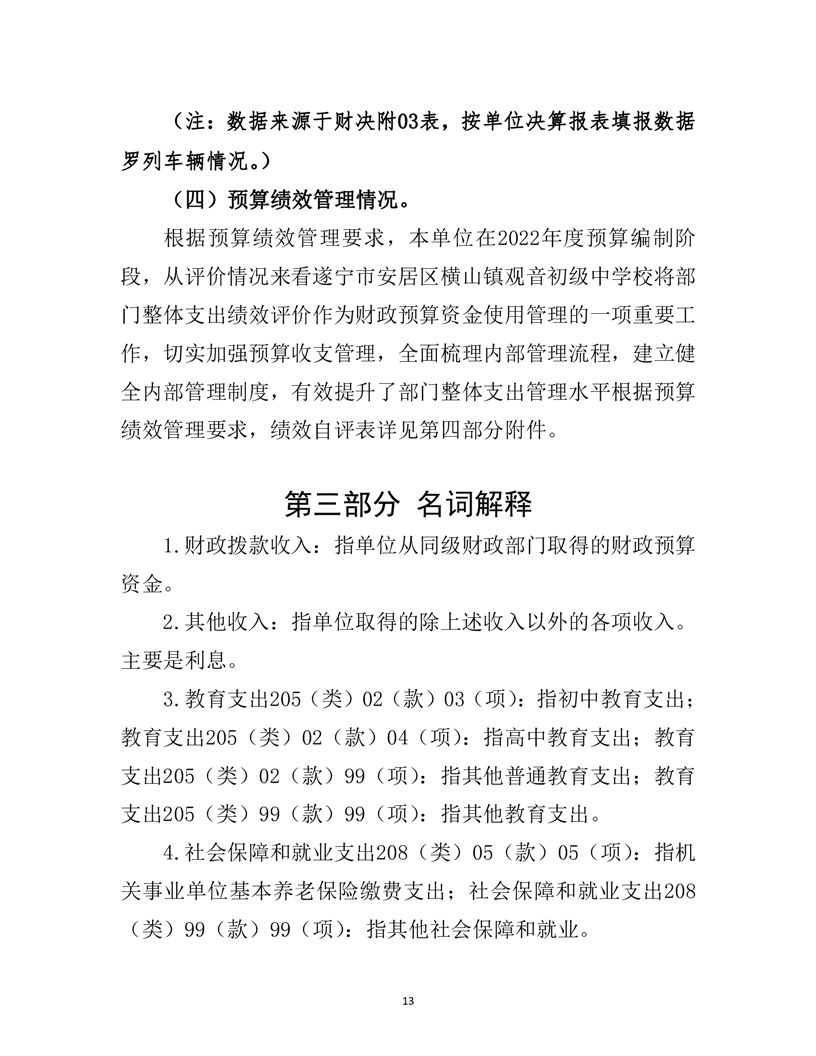 遂宁市安居区横山镇观音初级中学校 2022年单位决算