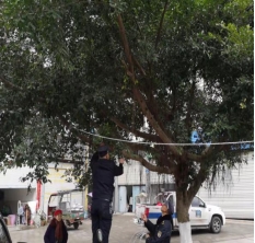 滨江路沿线居民行道树上私设晾衣绳,区综合执法局“快刀斩乱麻”,纠正不文明行为。