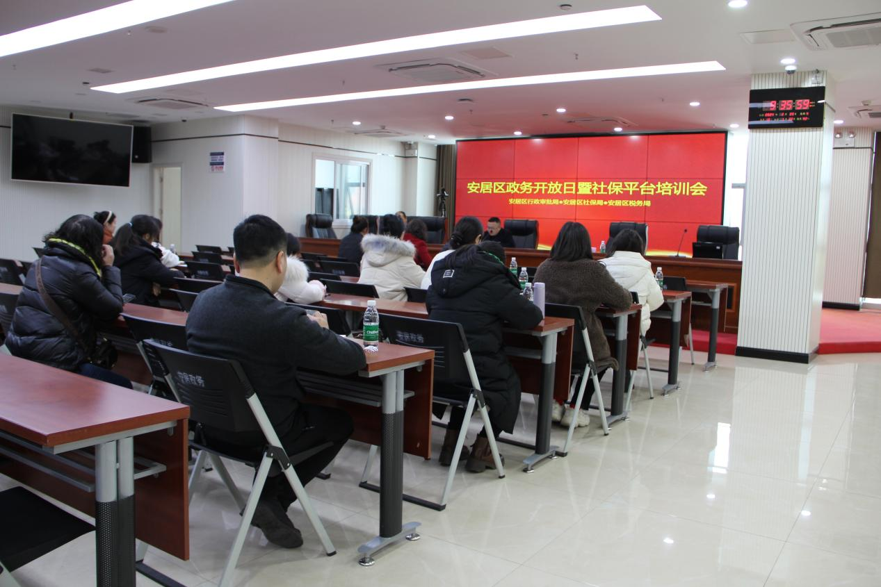 为提高我区企业社保系统经办人员的业务水平和办事效率,确保社保工作的准确性与及时性,2月29日,区行政审批局、区社保局与国家税务总局安居区税务局在安居政务综合大楼四楼大会议室联合开展“安居区政务开放日暨社保平台培训会”。