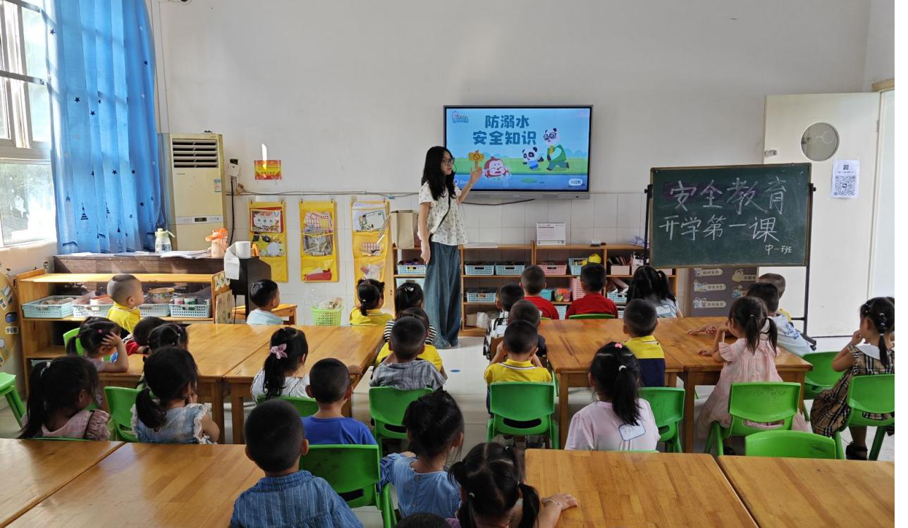 近日,遂宁市安居区分水幼儿园各班在新学期开学第一天精心组织幼儿开展开学安全教育第一课。