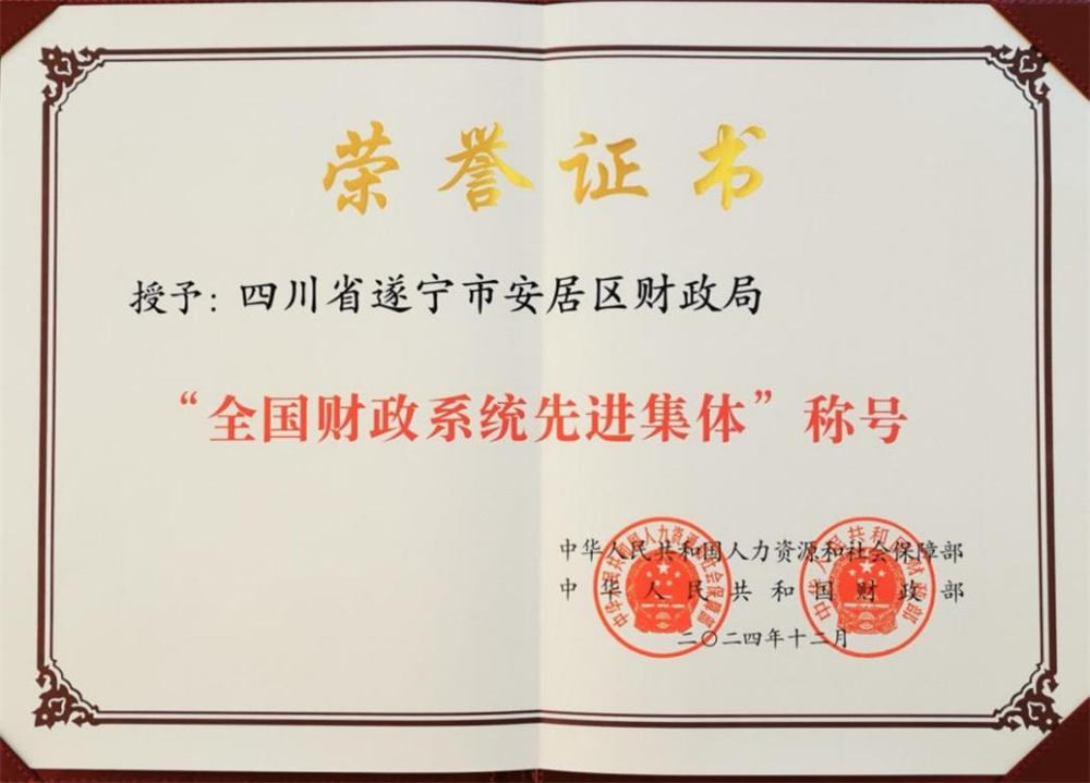 △区财政局荣获财政系统规格和等级最高的全国财政系统“先进集体”荣誉称号