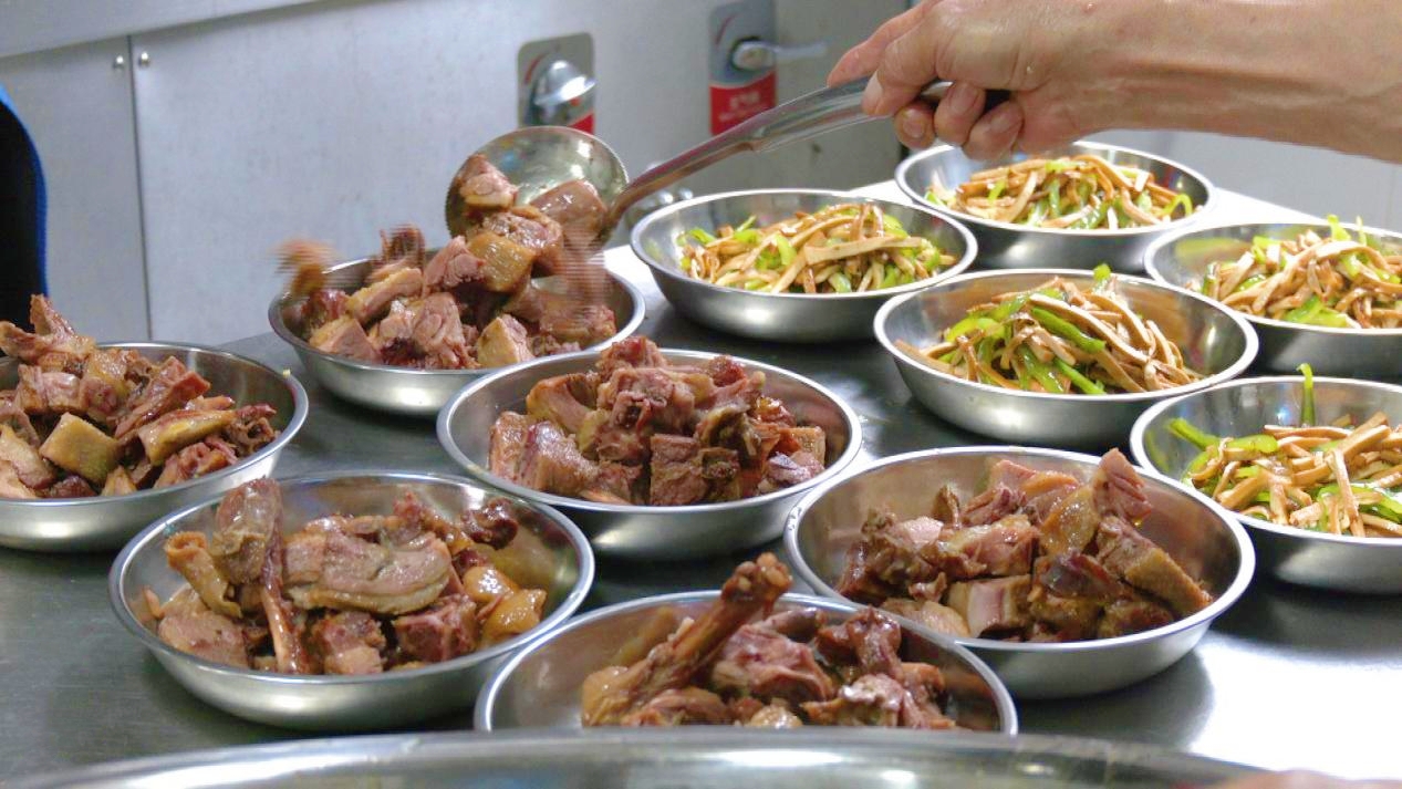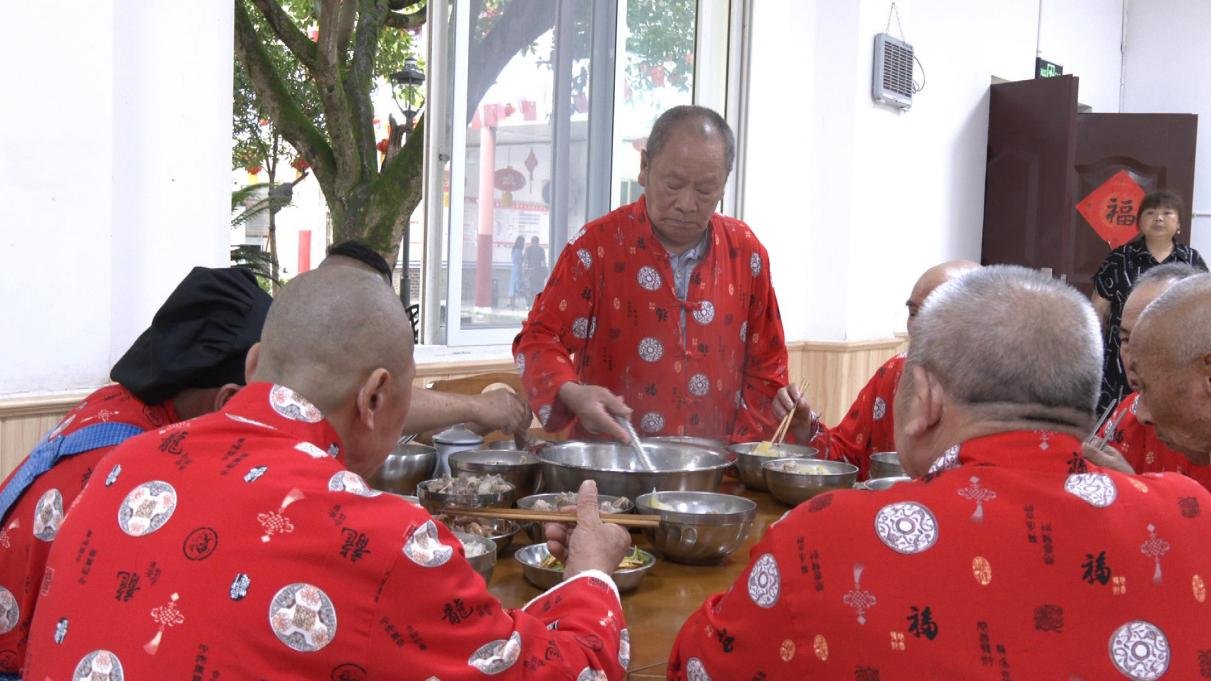 开饭咯......伴随着一声吆喝,中午11点半,工作人员将热腾腾的菜摆上桌子后,老人们便开始享受可口的食物。“排骨炖冬瓜”“香酥鸭”“炒豆腐干”……荤素搭配、营养均衡,这些菜单都是院里按照老人需求制定的,西眉镇中心敬老院集中供养对象吴友经说:“早上有包子、馒头、稀饭,中午有两菜一汤,炖排骨、烧牛肉、滑肉汤这些都吃得到,晚上还有水饺、面条,饮食上我们都很满意。”