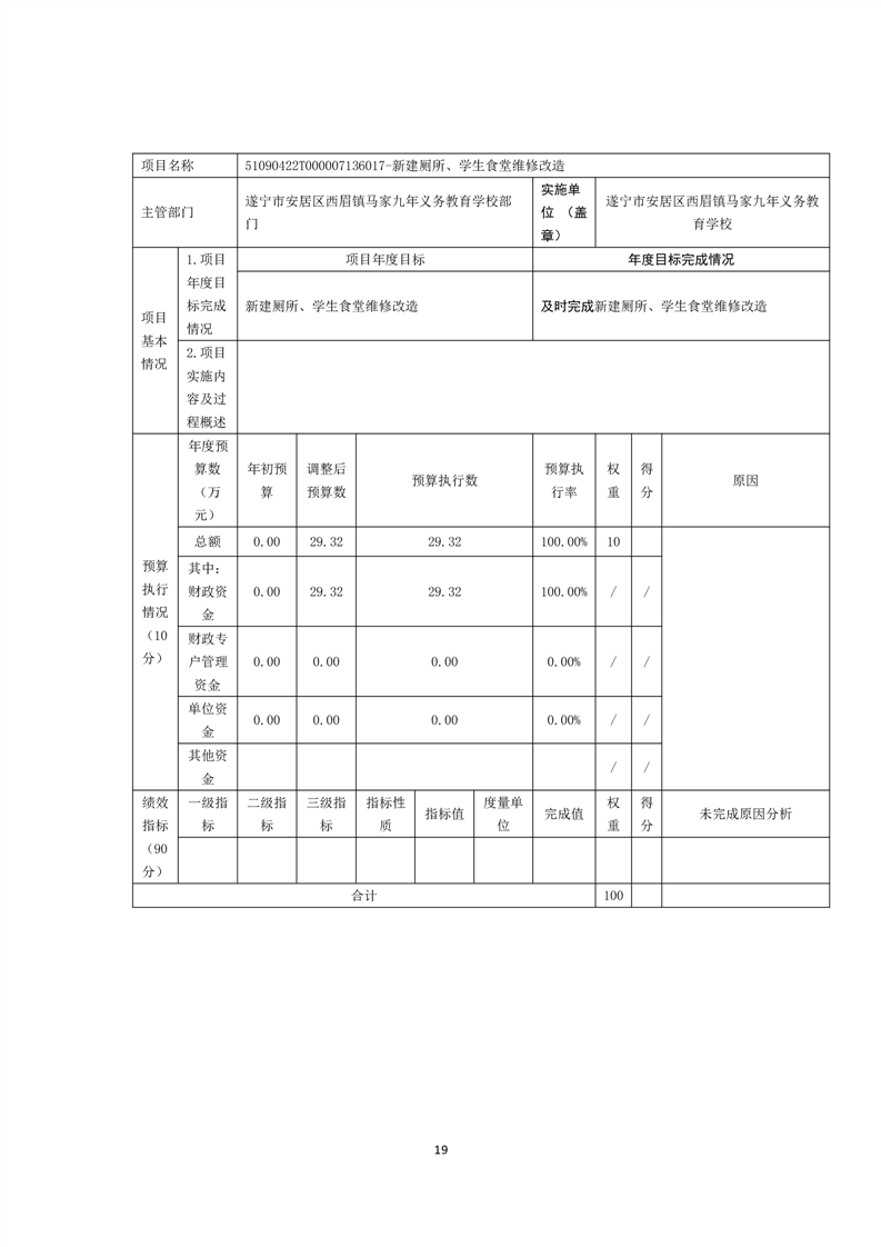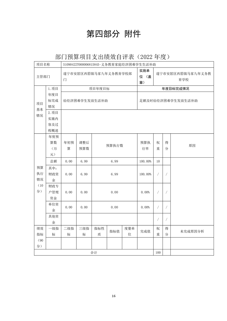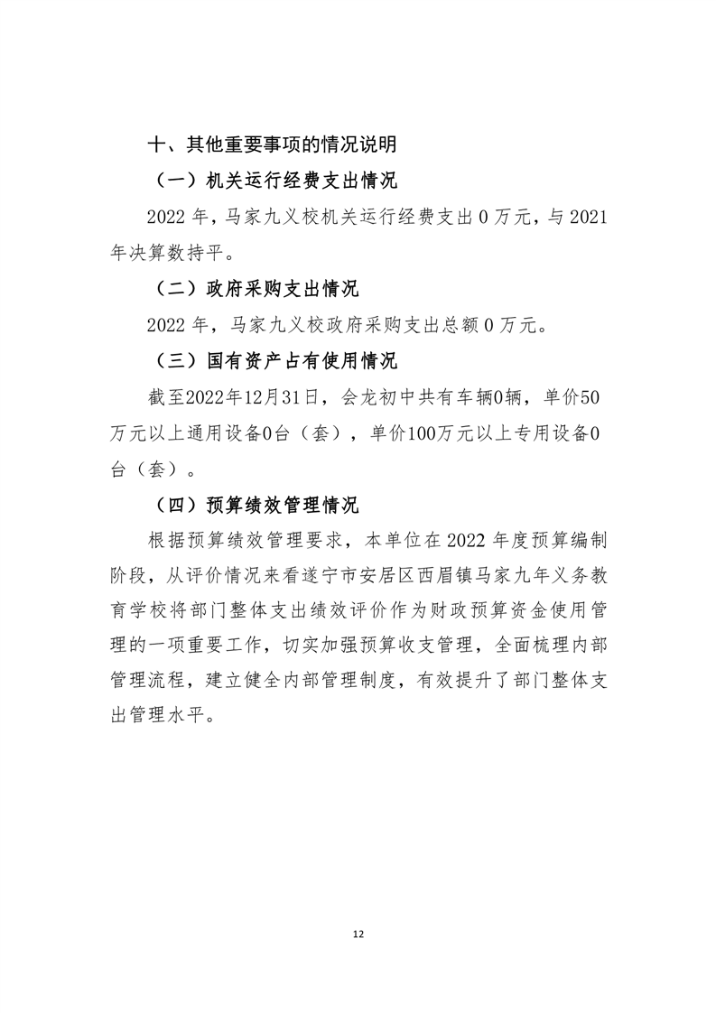 遂宁市安居区西眉镇马家九年义务教育学校 2022年决算