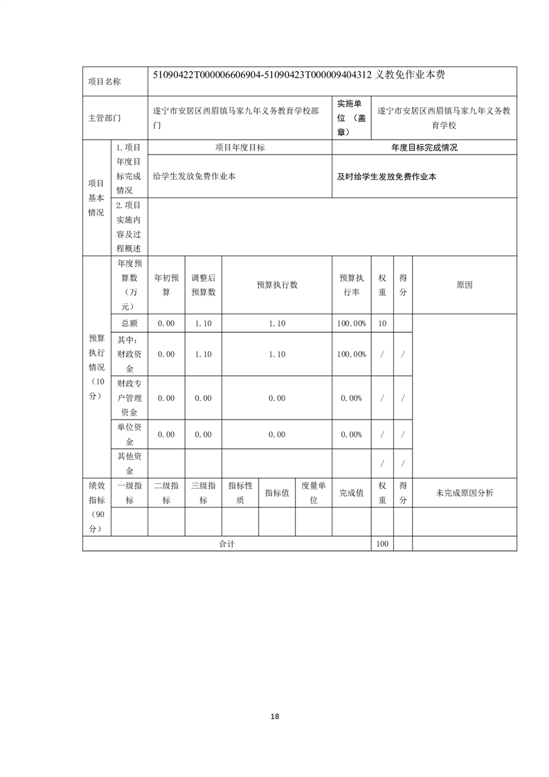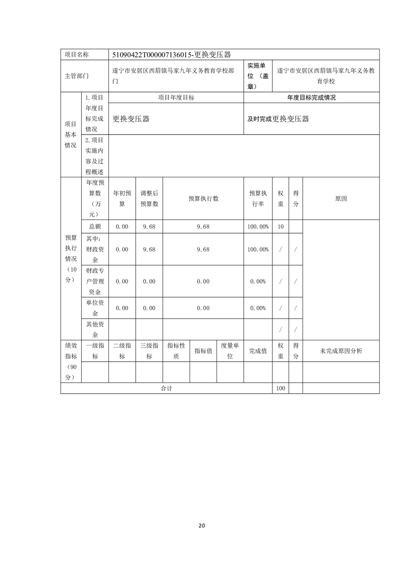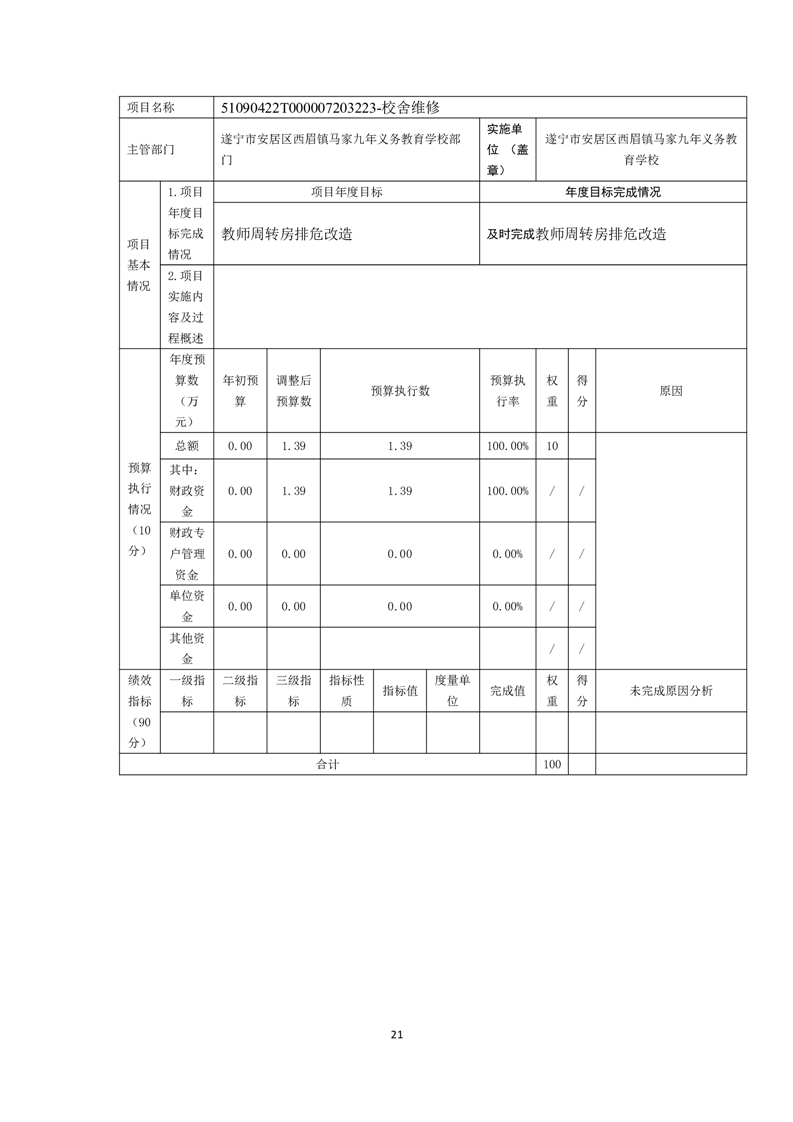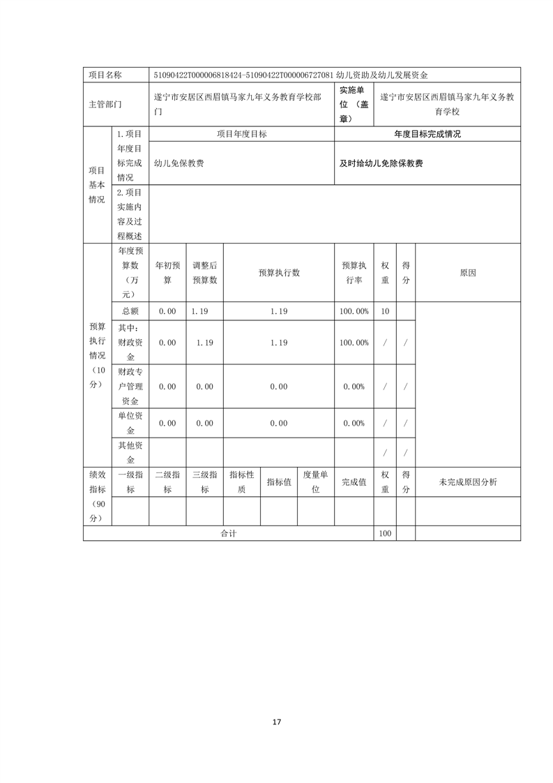 遂宁市安居区西眉镇马家九年义务教育学校 2022年决算