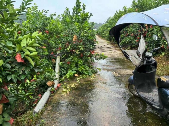 高滩坝村4组果园地弱电线路掉落在地,影响群众出行。
