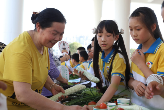 收获的喜悦迅速转化为爱心行动。义卖现场,“小掌柜”们热情洋溢,自豪介绍亲手采摘的新鲜蔬菜。