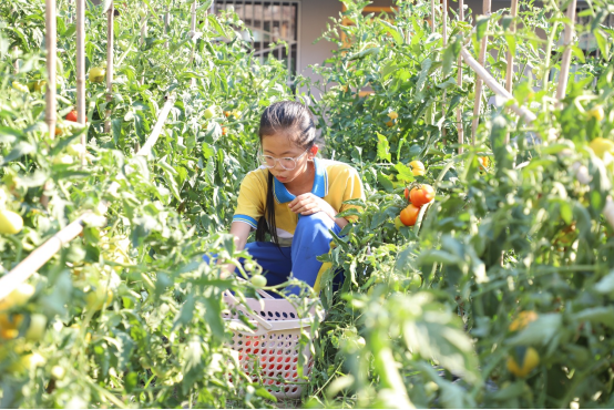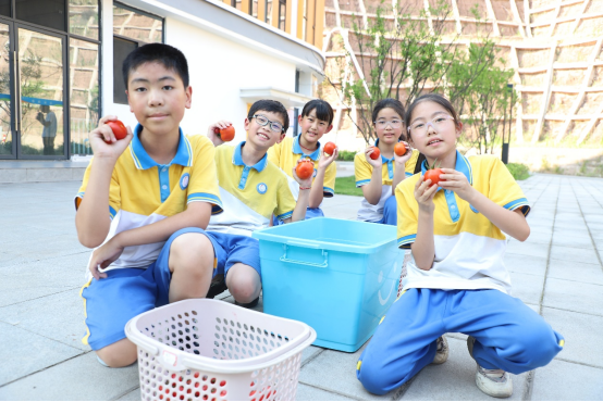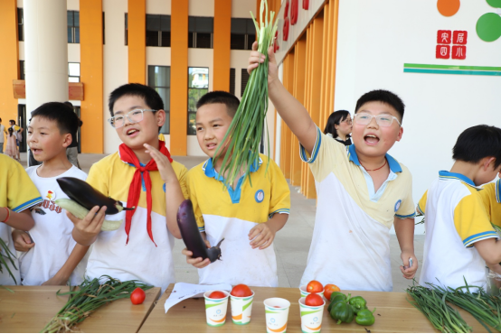 在“躬行园”菜地里,化身“小农夫”的同学们一丝不苟地播种、浇灌、除草,精心照料着各类蔬菜,到了收获时节,他们细心采摘并整理成熟的果实。