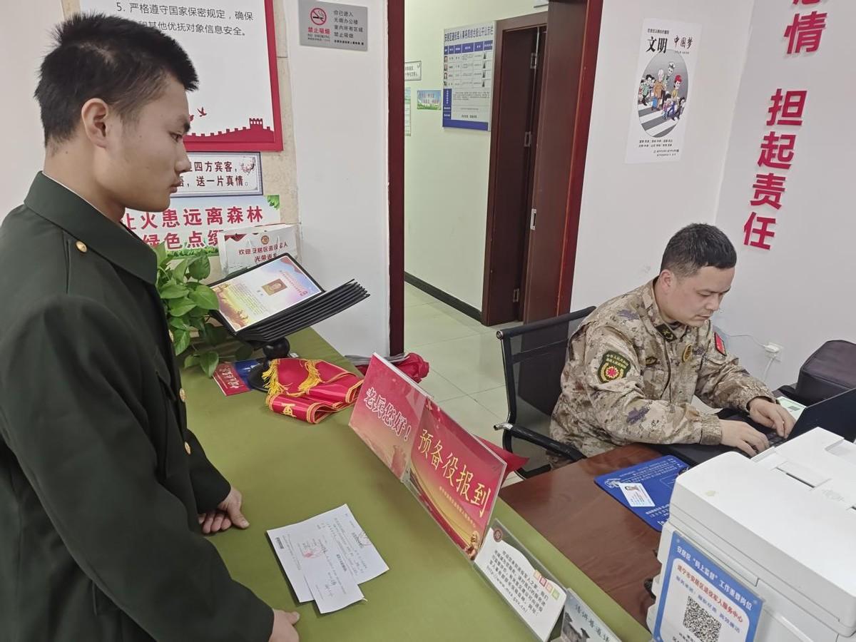 报到现场,安居区人武部协同区退役军人事务局工作人员结合退役军人报到返乡办理接收手续,认真核查他们的相关手续、资料,形成“一人一册”,建立健全退役军人纸质档案和电子档案。做好预备役登记,为下一步相关工作打好扎实基础。