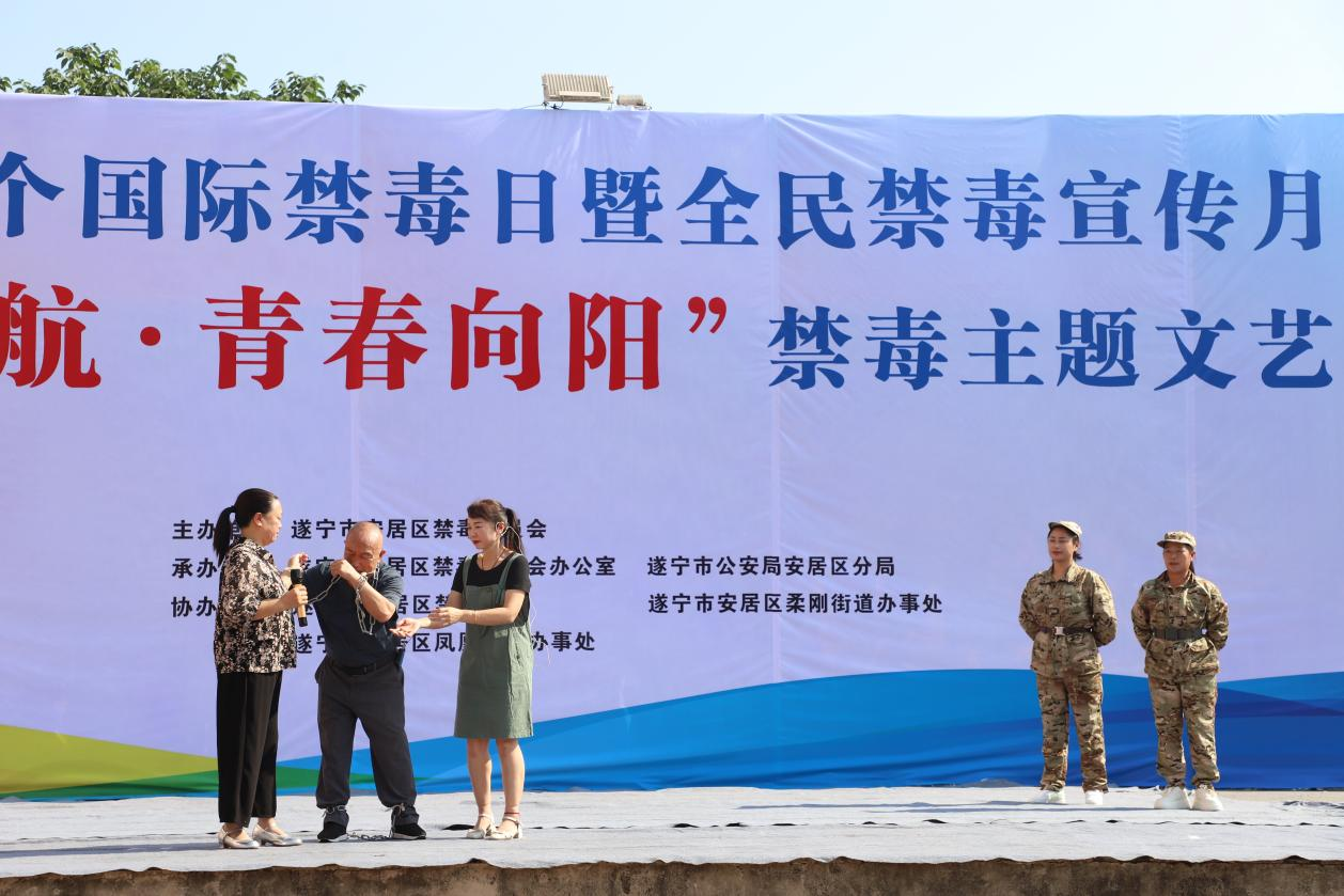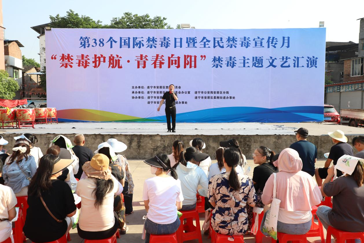 6月13日,区禁毒办联合市公安局安居区分局禁毒缉毒大队、区检察院开展第38个国际禁毒日暨全民禁毒宣传月“禁毒护航·青春向阳”禁毒主题文艺汇演活动。