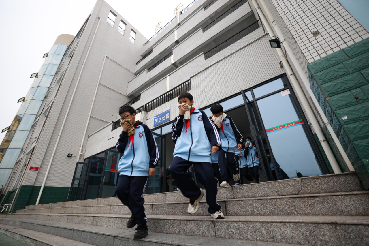 “着火了,着火了!”11月7日下午,在安居一中宿舍楼内,随着一声声的呼喊声传来,同学们用湿毛巾捂住口鼻,有序快速疏散到安全区域。