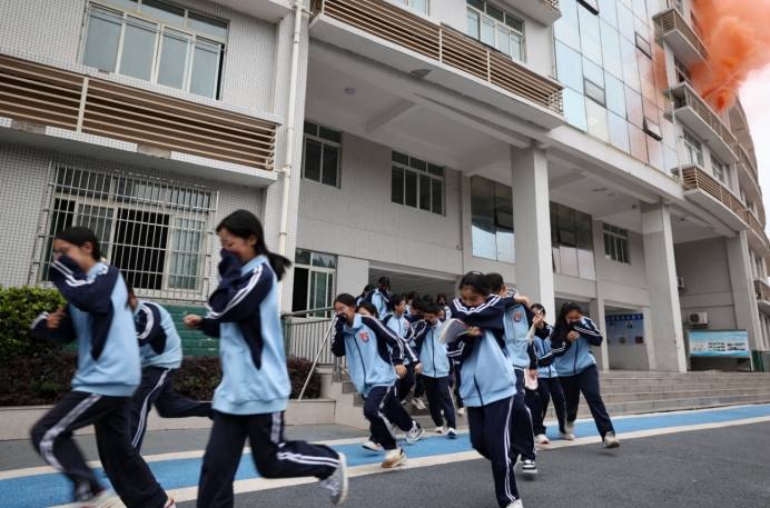 “通过今天的演练,让我明白了消防知识的重要性,万一真的发生了火灾,我们也应该像今天这样,秩序井然地撤离。”安居一中学生吴锦沁说。