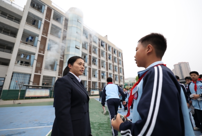 学生向老师报告疏散同学人数