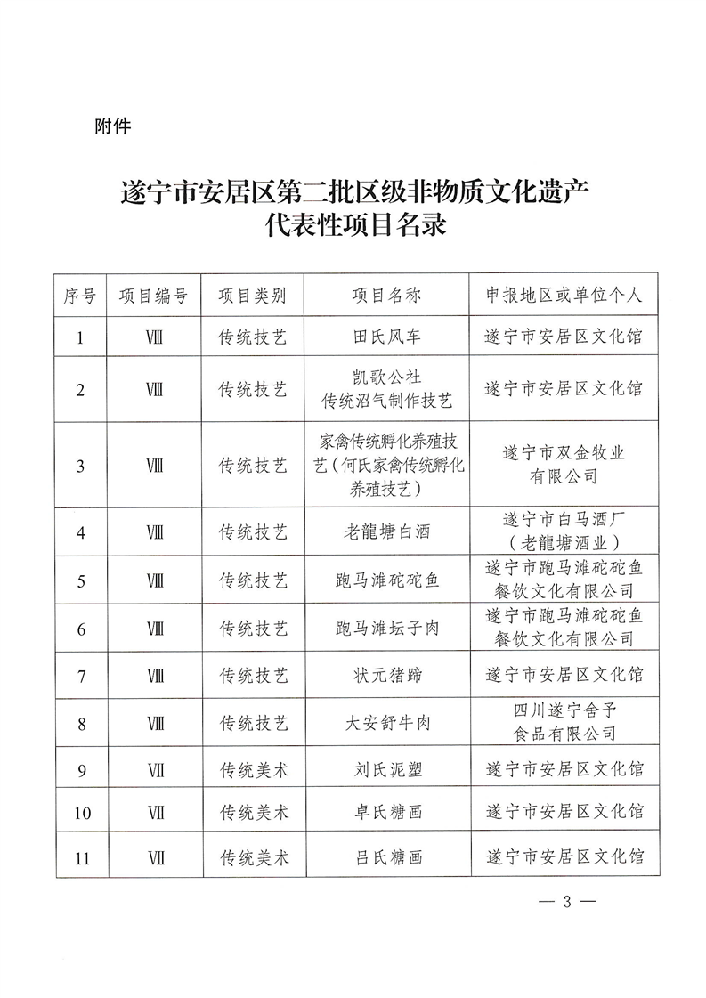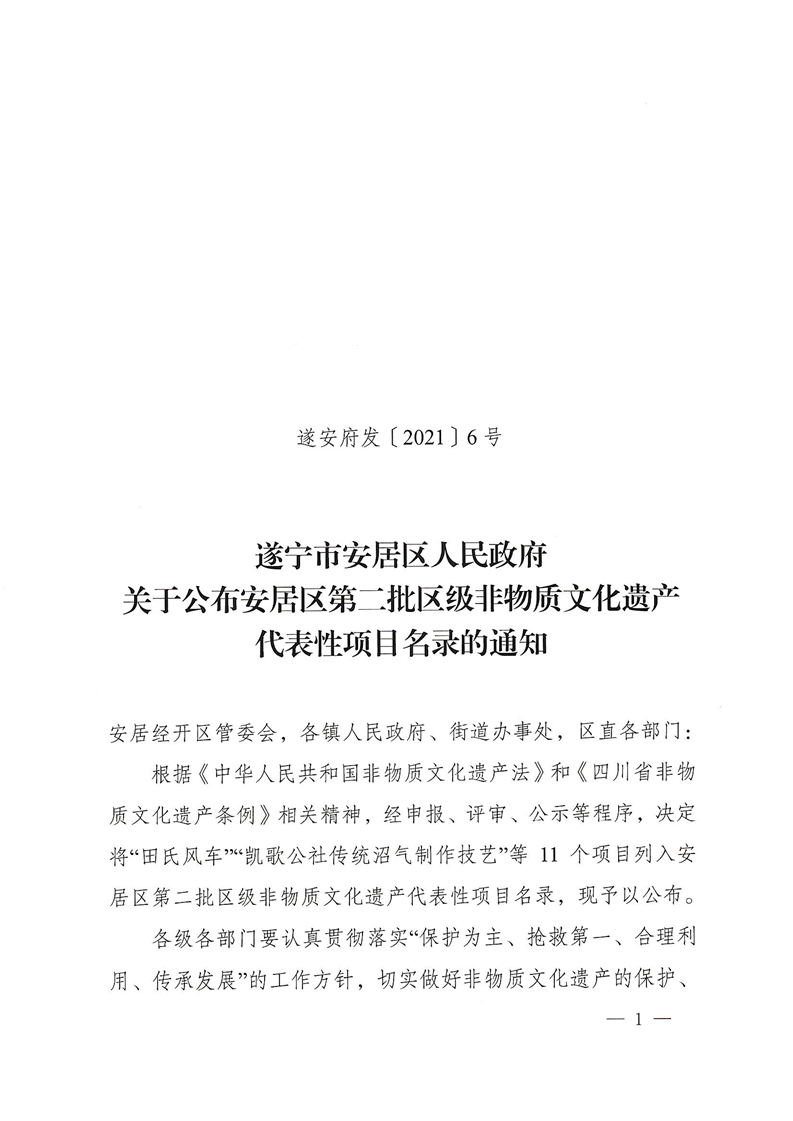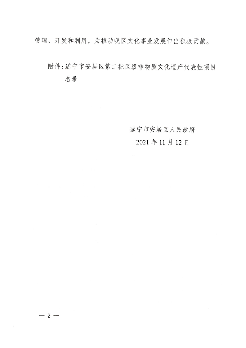遂宁市安居区人民政府关于公布安居区第二批区级非物质文化遗产代表性项目名录的通知