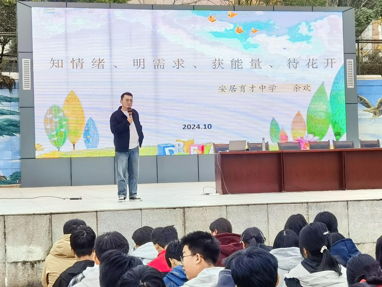 10月30日,西眉中学邀请了知名心理专家——安居区育才中学余欢老师开展心理援建活动。此次讲座旨在帮助学生了解心理健康的重要性,掌握应对心理问题的方法,促进学生的全面发展。