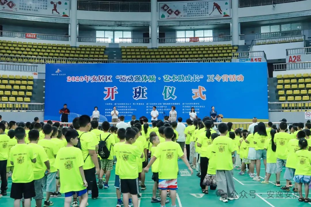 7月7日早上,孩子们的笑声打破了区体育中心的宁静,由安居区关工委、区文化广电体育旅游局、区教育局、区总工会、区妇联、共青团安居区委联合主办的2025年安居区“运动强体质·艺术助成长”夏令营活动在此拉开帷幕。