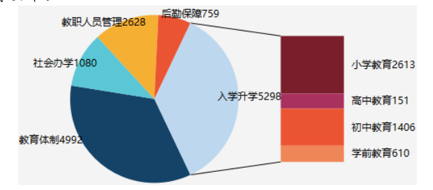 (八)教育管理方面15972件,同比下降5.26%,群众满意率98.15%,同比下降0.74%。主要涉及学区划分、学位分布、学校食堂食品卫生安全、学校补课、师德师风、教育收费等问题。相关部门要加大学校招生监管力度,进一步统筹城乡、城区教育资源,确保教育资源均衡分配,整治教育领域乱象,促进教育公平。