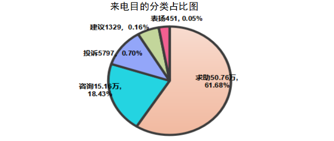 从受理量看,来电量呈高开低走趋势,1月来电量最高,达7.6万件,4月来电量最低,为6.1万件。从办理效果看,按期办结率基本保持在99.9%以上,办结回复率保持在95%以上,8月办结回复率最高,达97.88%,1月办结回复率最低,为95.66%;群众满意率7月最高,达98.78%,自9月起有所下滑,12月最低,群众满意率为88.08%。各承办单位要加强源头治理,着力推动解决突出问题,下一步深入查摆、深究问题、认真剖析,不断提升问题解决率、群众满意率。