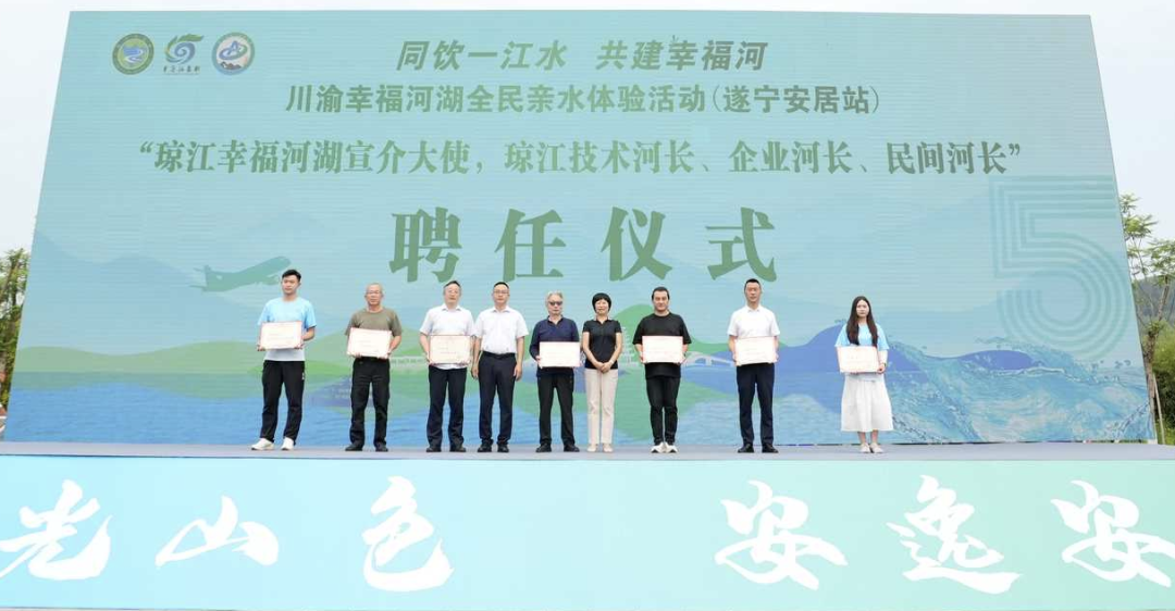 为广泛凝聚护水合力,活动现场聘请了中国一级美术师薛从伦、重庆市文艺志愿者协会副主席杨俊、四川大学建筑与环境学院副院长刘敏、四川裕能新能源总经理李洪辉、原双河社区主任曾福林以及西部计划志愿者邓维、胡皓泉七位代表担任“琼江幸福河湖宣介大使”和“技术河长”“企业河长”“民间河长”。四川省河长制办公室副主任、水利厅副厅长权燕、重庆市河长办公室副主任、水利局副局长宋刚勇为他们颁发了聘书。