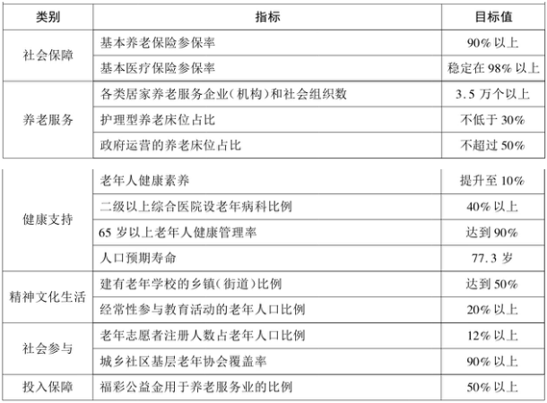 “十三五”期间老龄事业发展和养老体系建设主要指标
