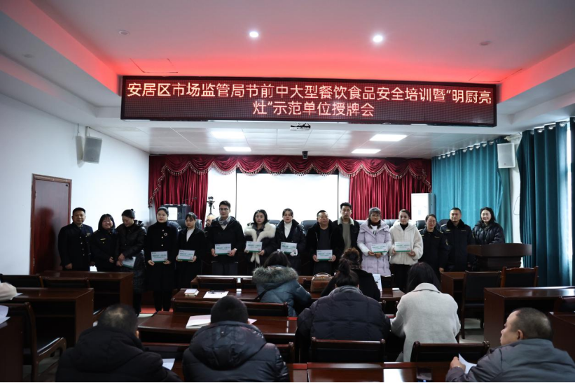 为保障广大群众在新年期间的饮食安全,加强餐饮食品安全监管效能,1月10日,区市场监管局举行春节前大中型餐饮企业食品安全培训暨“明厨亮灶”示范单位授牌仪式。