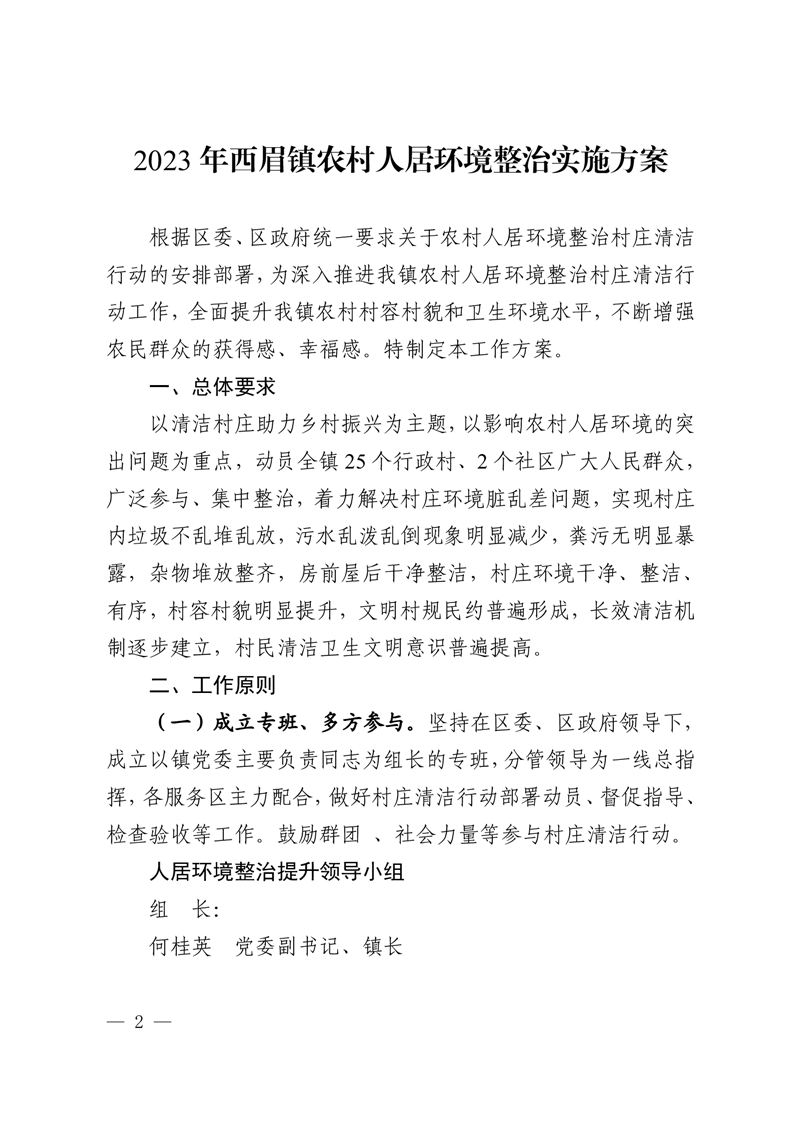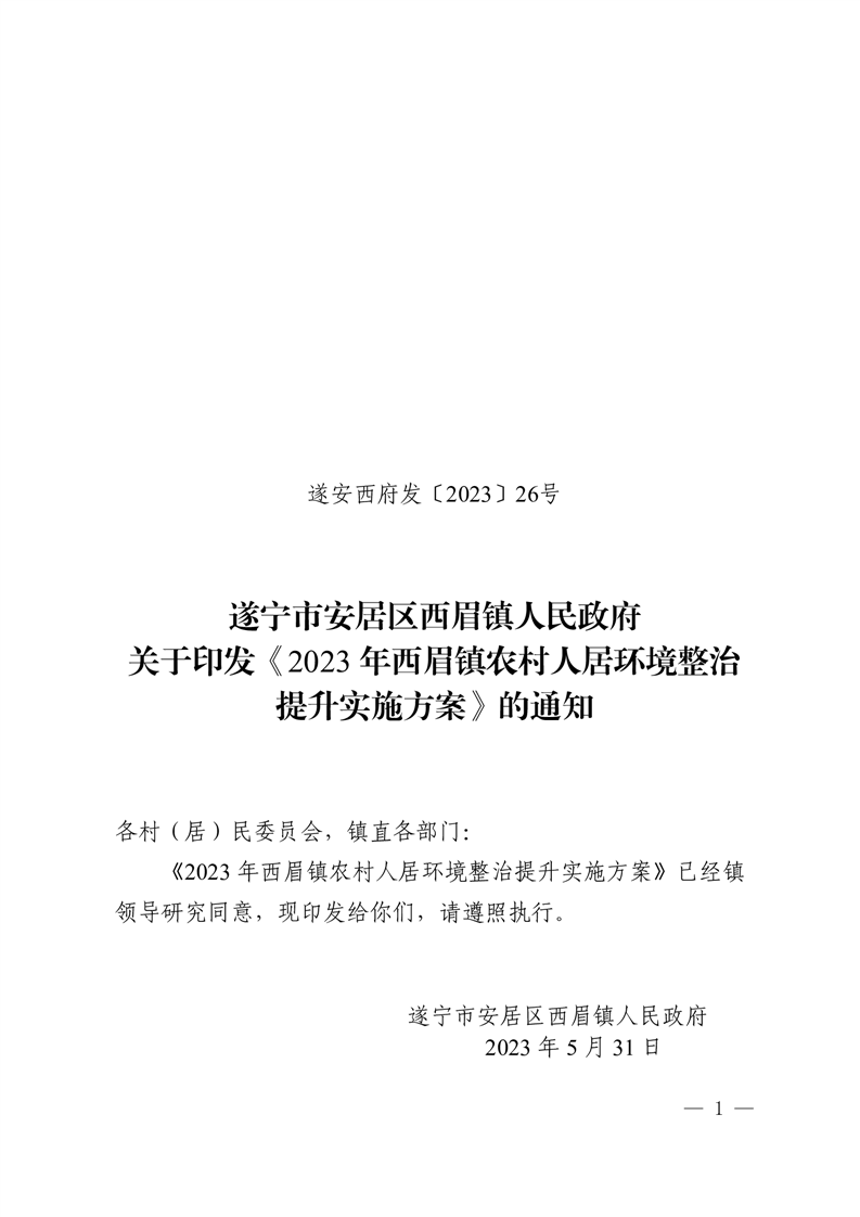 遂宁市安居区西眉镇人民政府 关于印发《2023年西眉镇农村人居环境整治提升实施方案》的通知