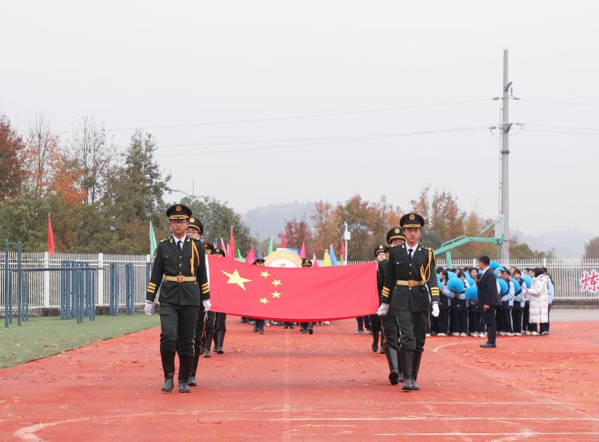 开幕式上,火炬手们手持火炬,奋力奔跑,率先点燃全场师生的运动热情。紧接着,国旗队迈着铿锵有力的步伐,将国旗护送至升旗台。激昂的国歌声响起,鲜艳的五星红旗缓缓上升,全体师生向国旗行注目礼。