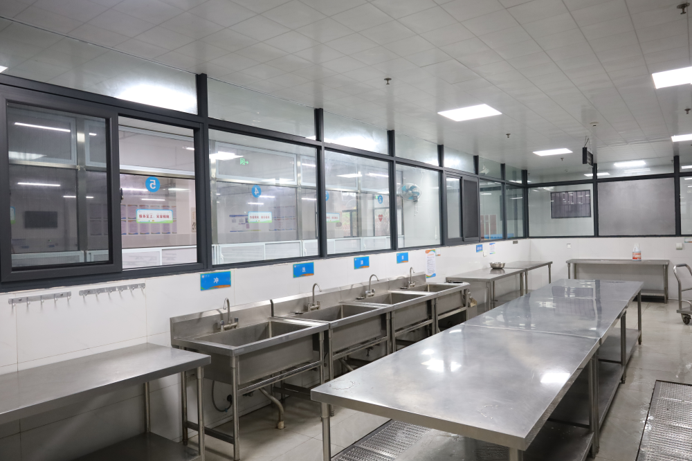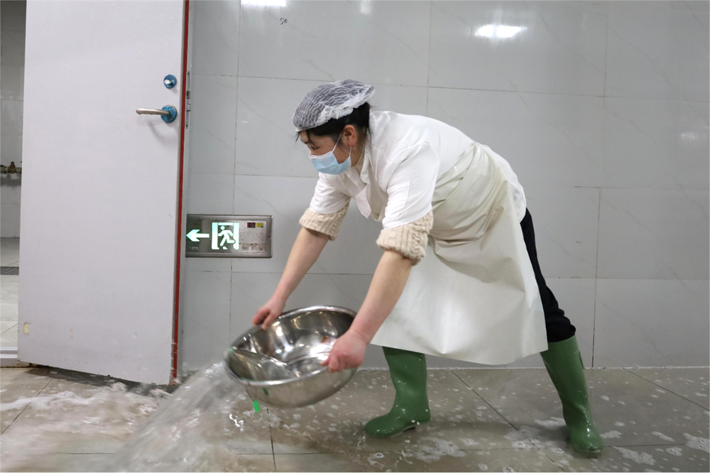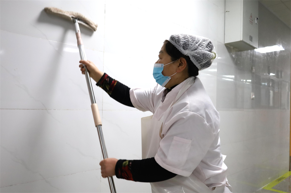 2月12日上午,安居四小的食堂里,十余名工作人员正忙着对食堂进行大清理,清刮墙面、擦拭门窗、冲洗地面……确保在新学期为师生营造一个安全、洁净、卫生的就餐环境。