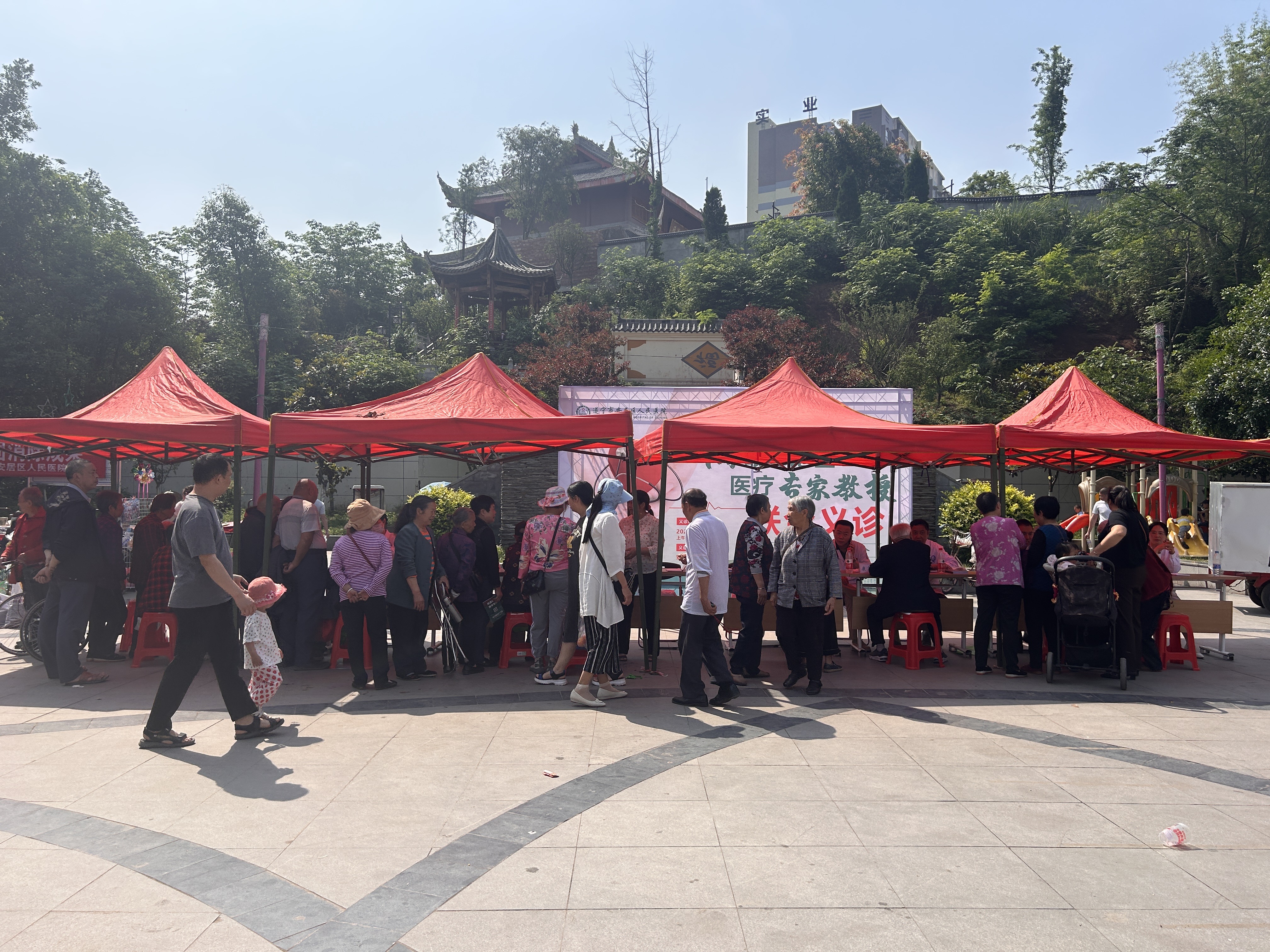 4月27日,在24米街广场上,一场特别的义诊活动正在如火如荼地进行。本次义诊是川渝毗邻地区县、区级医疗机构第一次党外知识分子线下活动之一。此次党外知识分子线下活动旨在加强川渝毗邻地区县、区级医疗机构党外知识分子联系,提升党外知识分子整体水平,共同为促进医院和地方经济社会发展建言献策、贡献才智。