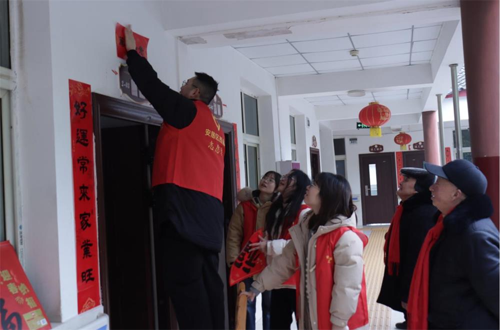 “万事如意”“好运常来”“福星高照”……1月21日一大早,走进西眉镇中心敬老院,志愿者们正在敬老院内忙碌布置,贴春联、粘窗花,还有的帮助老人打扫卫生、整理床铺,陪伴老人拉家常、话里短,火红的装饰、热闹的氛围为养老院里增添了一份浓浓的年味。