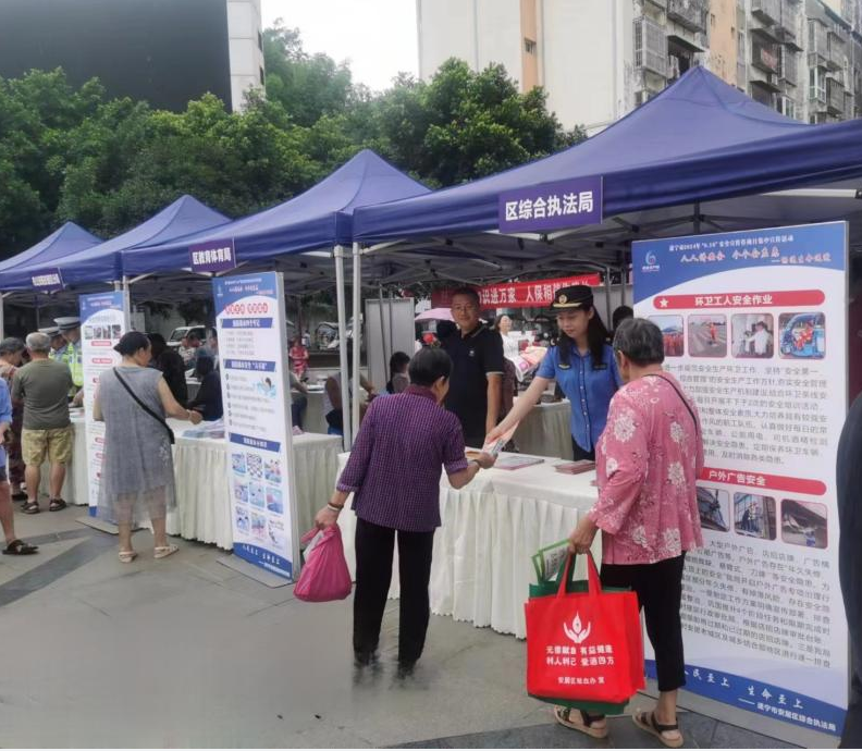 每年的“6.16”是国家安全宣传咨询日。为此,区综合执法局紧跟《遂宁市安全生产委员会办公室关于承办遂宁市2024年“6.16”安全宣传咨询日集中宣传活动建议方案》的步伐,围绕“人人讲安全,人人会应急,畅通生命通道”的主题精神,对户外广告安全、市政设施安全、环卫工人安全作业等方面,在头陀寺广场进行集中宣传。