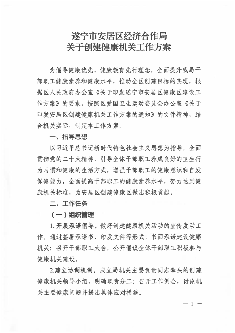 遂宁市安居区经济合作局关于创建健康机关工作方案
