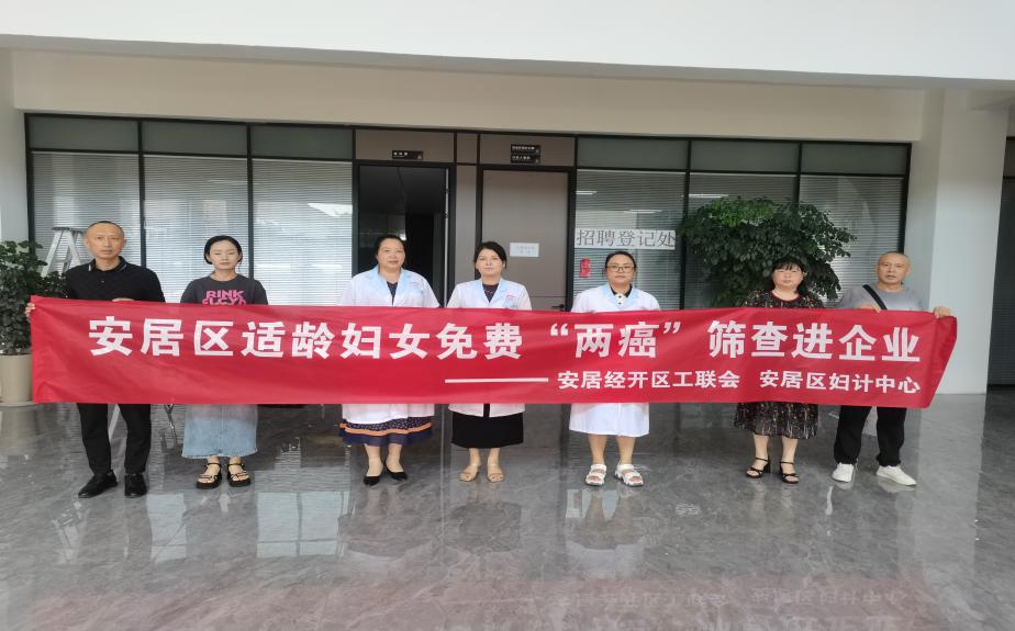 为关爱企业女性,提升妇女健康水平,安居区妇计中心联合安居区经开区积极推进适龄妇女免费“两癌”筛查进企业活动,为35-64岁适龄女职工送上健康关怀。