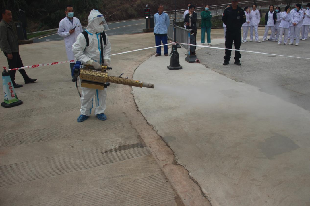 模拟医疗废物回收员处置医疗废物时出现医疗废物泄漏。通过接到通知、启动应急预案、封锁进出口、消毒、收集医疗废物等流程对处理医废泄露进行演练。