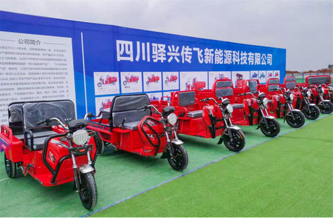 安居新能源年产75万辆电动正三轮摩托车项目由驿兴传飞、虹尊方圆、眉山双胜、广汉腾兴、蜀宇凯5个企业投资建设,计划总投资13亿元,占地200亩,主要建设厂房16万平方米,建设胜利达牌电动正三轮车、方圆福电动正三轮车、快递车、环卫车及电动低速物流车等生产线15条。