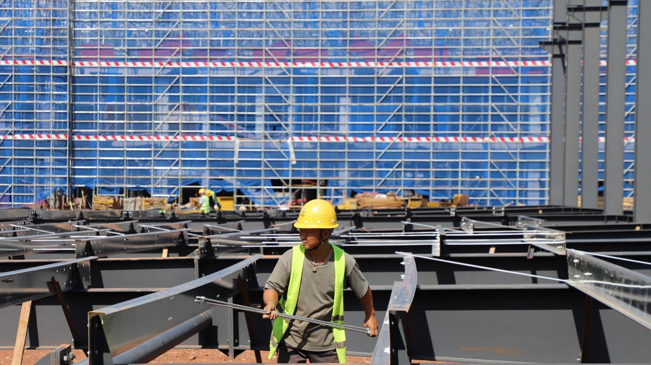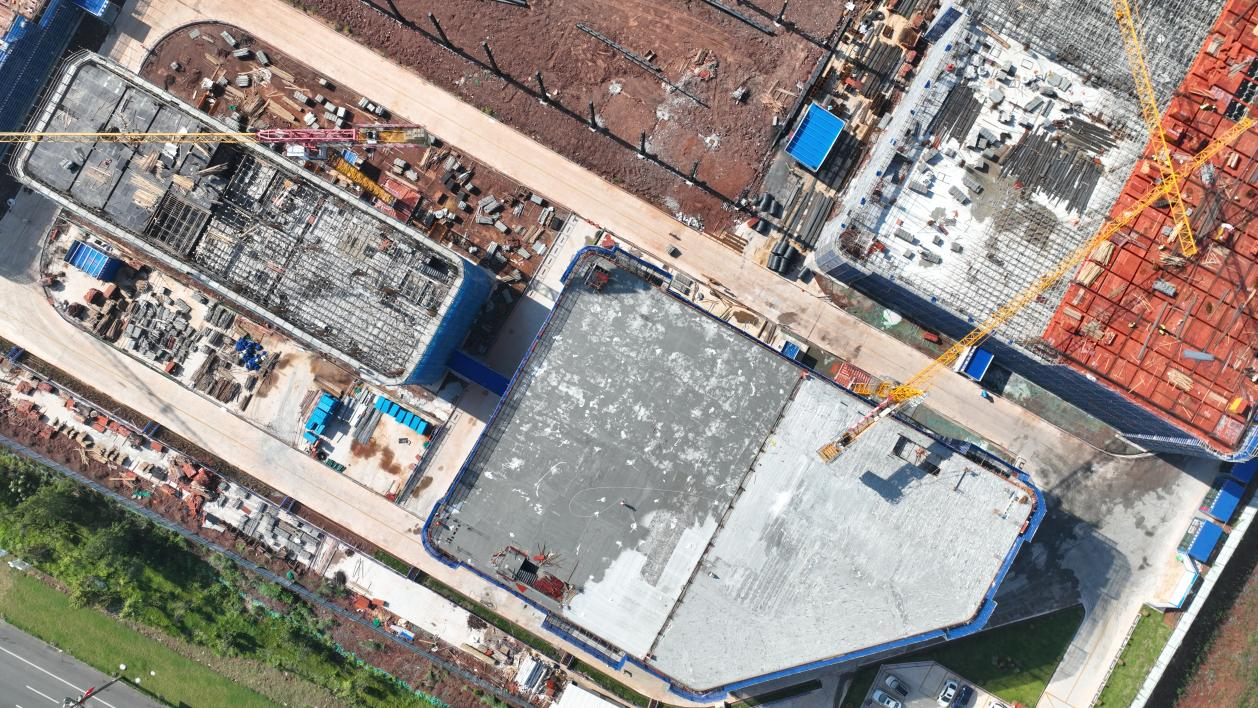 “目前,项目整体建设已完成总工程量的50%,正式进入主体结构施工的关键冲刺期。”项目经理徐成介绍,“1号楼已实现全面封顶,2、3号楼正同步推进主体结构与钢结构施工,综合调度中心也施工至第六层。预计10月将迎来多个楼栋的集中封顶,为后续全面转入砌体、二次结构及装饰装修奠定坚实基础。”