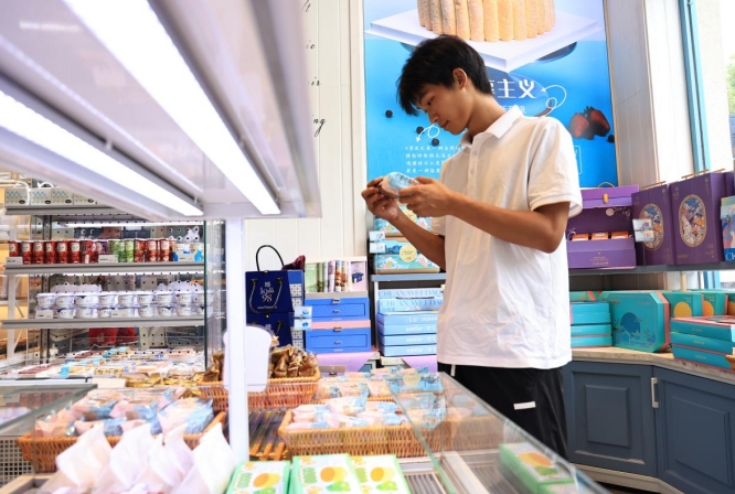 健康生活是当今社会的热门话题,“健康月饼”也已成为社会新趋势。在安居一连锁甜品店内的显眼位置,不仅摆放了规格不同的月饼礼盒,还有椰香拿铁、麻薯红豆等各种新颖健康的散装月饼。