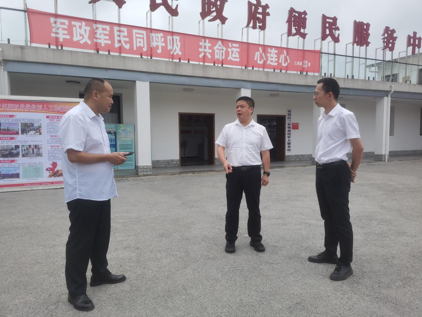 6月20日上午,安居区委常委、宣传部长谭久宏到三家镇调研双拥模范建设工作开展情况,三家镇镇长刘伟、便民服务中心主任郑强陪同。