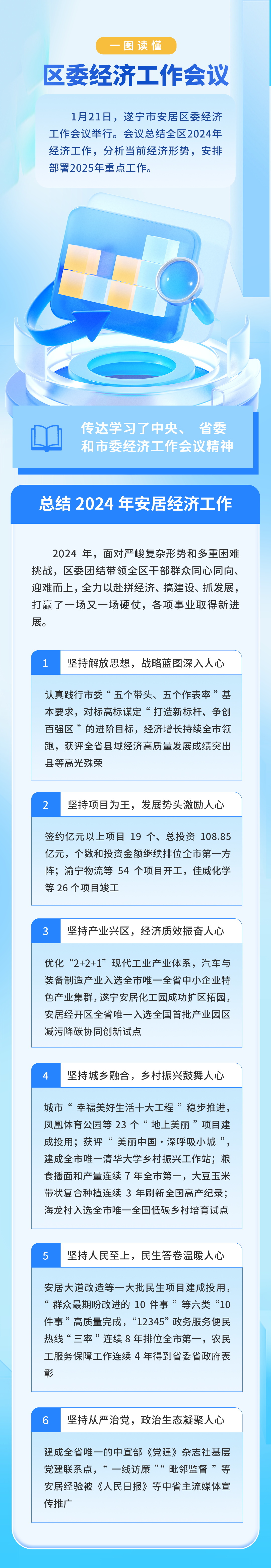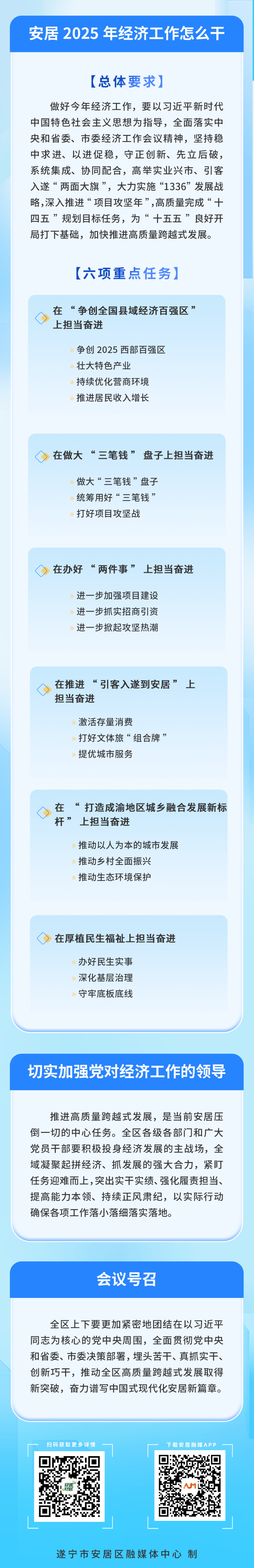 1月21日,遂宁市安居区委经济工作会议举行。会议总结全区2024年经济工作,分析当前经济形势,安排部署2025年重点工作。