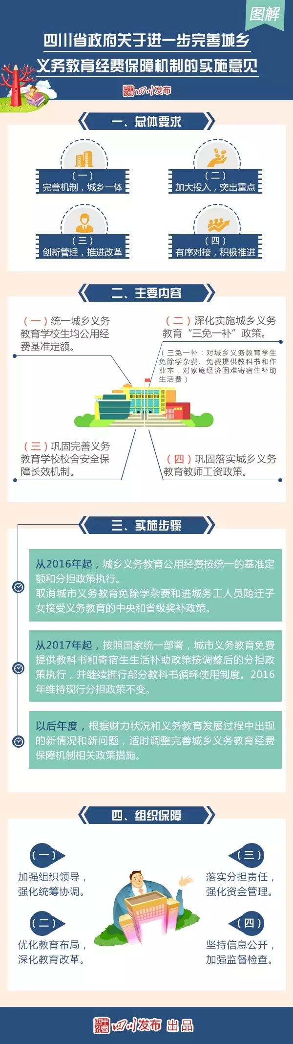 从2016年起,统一我省城乡义务教育学校生均公用经费基准定额。对城乡义务教育学校(含民办学校)按照不低于基准定额的标准补助公用经费,对城乡义务教育学校(含民办学校)按照普通小学每生每年不低于600元、普通初中每生每年不低于800元的基准定额补助公用经费。