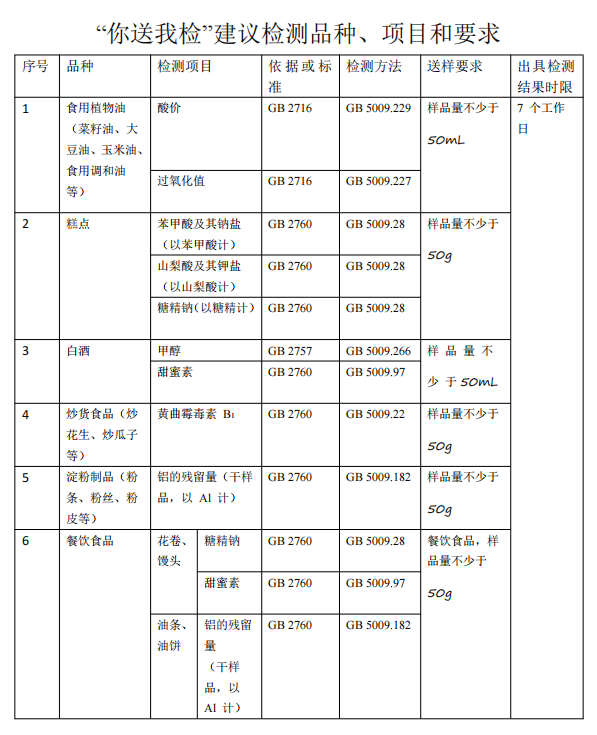 免费提供食品安全快速检测服务
