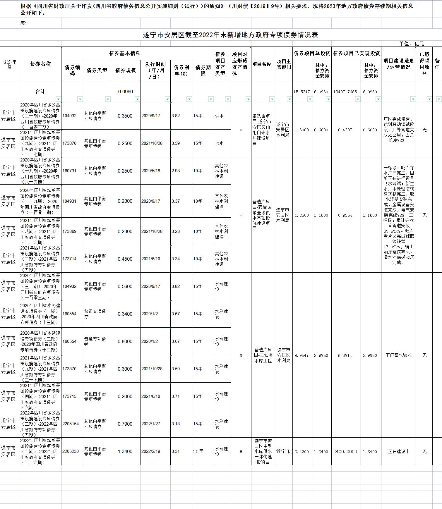 水利——2023年度遂宁市安居区新增地方政府债券存续期信息公开).xlsx