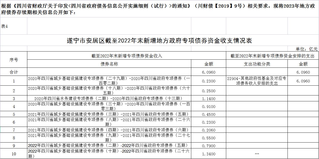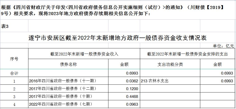 水利局——2023年度遂宁市安居区新增地方政府债券存续期信息公开