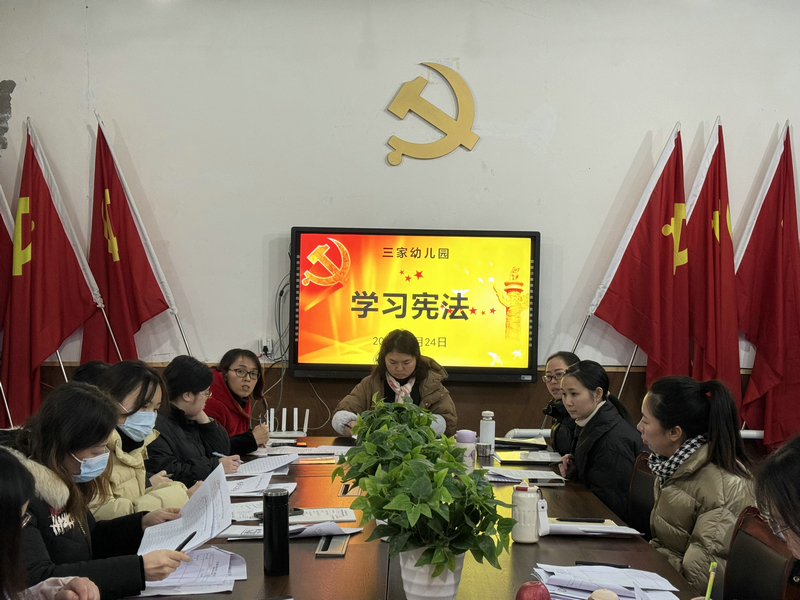 2月24日,三家幼儿园组织全体教职工集中学习了《中华人民共和国宪法》,并组织研讨交流,进一步强化了教职工的法治观念。